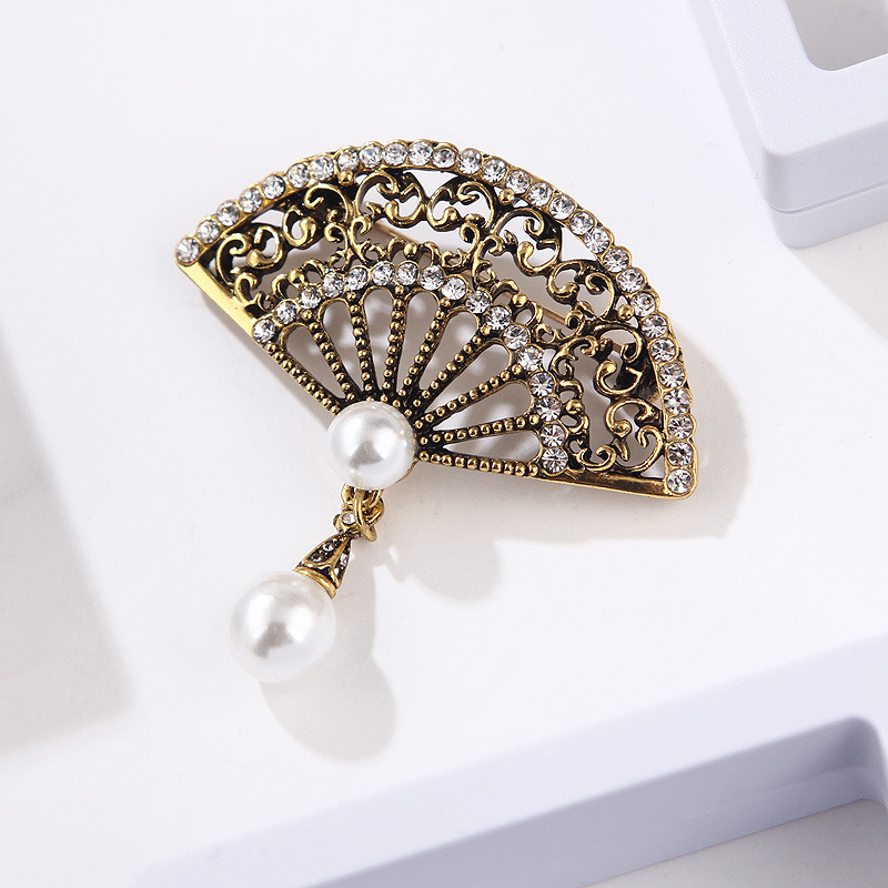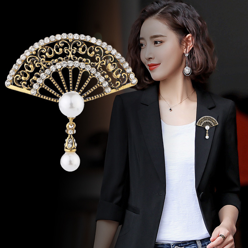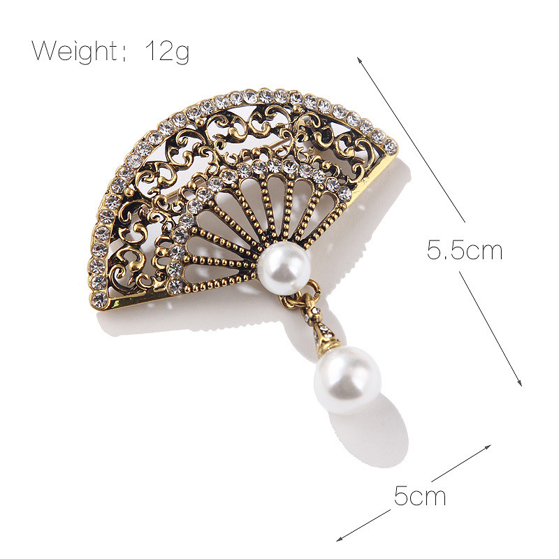 Elevate your wardrobe with the Elegant Graceful Rhinestone Pearl Vintage Fan Brooch, a stunning accessory that brings a touch of vintage sophistication to any outfit. This brooch features a beautifully designed fan shape adorned with sparkling rhinestones and faux pearls, adding a classic touch to your cheongsam or coat. The intricate detailing and retro style make it an exquisite choice for those seeking a blend of elegance and grace.